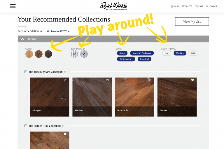 We have been in the hardwood flooring industry our entire lives. If we’re not experts, then such experts don’t exist. When we worked with clients in person we had a great way of narrowing down the millions of flooring choices to a select few that were perfect for each client’s specific space and needs. We spent years developing a system that would give people the exact same boutique experience on the web. Before Revel Woods, this sort of online experience didn’t exist (although we suspect we’ll see some copycats now).